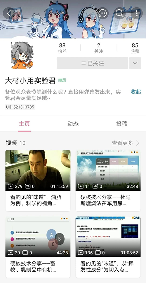 在b站(bilibili)搜索“大材小用实验君”,https://space.bilibili.com/521313785 进入我们的b站主页,即可观看往期直播回放,后期还有更多有趣实用的应用视频上传哦~敬请期待!