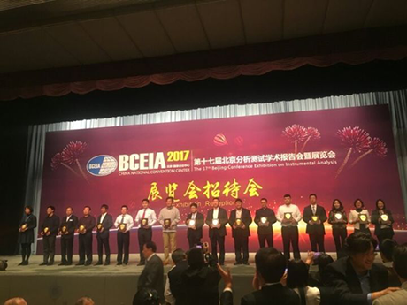 展会第一天,海能仪器传来捷报——BCEIA 晚宴颁奖环节,D100杜马斯定氮仪荣获 2017 BCEIA 金奖!